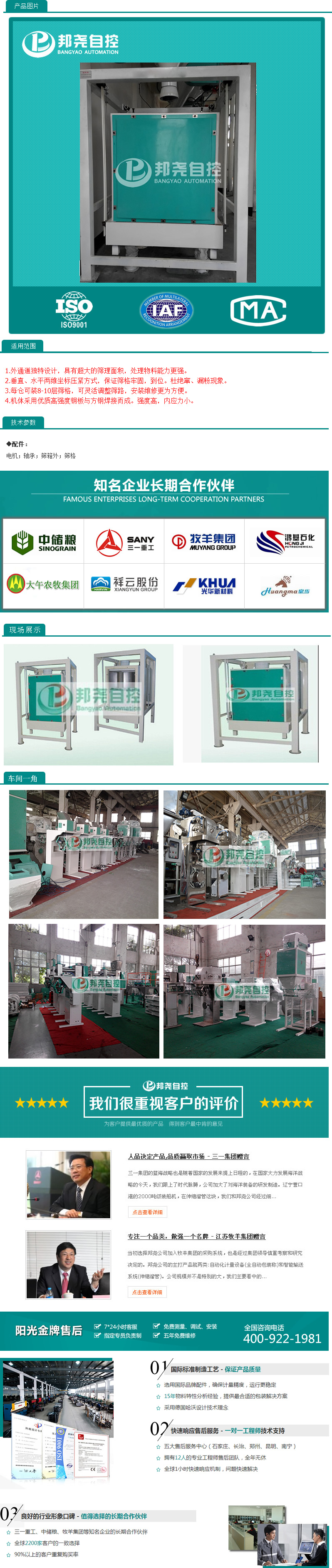 外通道獨(dú)特設(shè)計(jì),具有超大的篩理面積,處理物料能力更強(qiáng),垂直、水平兩維坐標(biāo)壓緊方式,保證篩格牢固,到位。杜絕竄、漏粉現(xiàn)象。